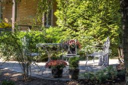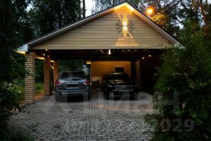 Имеется домик для хранения инвентаря и навес для машин. Возможность парковки до 7 автомобилей: 3 парковочных места внутри участка и 4 гостевых места на приватной площадке перед домом.