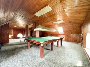 Мансардный этаж; две небольшие спальни и огромная игровая комната с бильярдом и настольным теннисом.