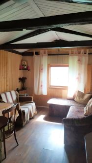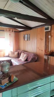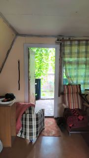 На участке два строения: ( гараж переднланный в домик и шале). Летом можно жить.