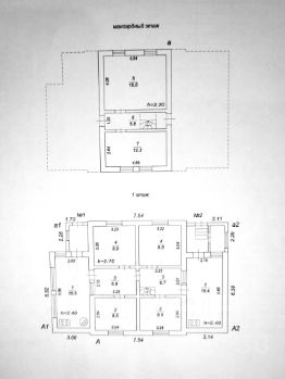 На 1-м этаже 4 комнаты, 2 кухни с холодными пристройками (прихожими) и коридор. На мансардном этаже 2 комнаты и 2 кладовки. Оборудован погреб и подвал.