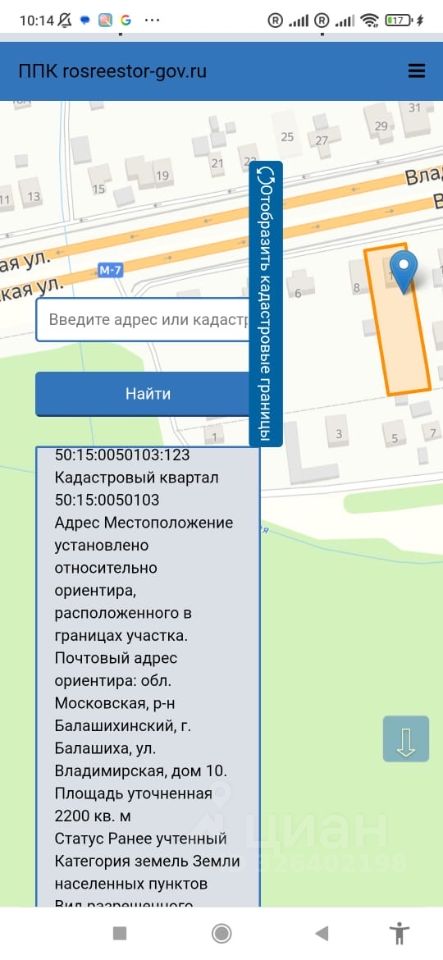 Продаётся идеальный участок 22 соток, От Собственника площадью 22 соток в городе Балашиха. Кадастровый номер участка 50:15:0050103:123 расположенного в г. Балашиха, улица Владимирская , д. 10. Участок находится на первой линии от Шоссе Энтузиастов. участок сухой, не требует засыпки грунтом, прямоугольной формы 25-метр на 88-метр. Подготовлен к продаже, вычищен, нет поросли и захламления. Расположение всего в 12 км от МКАД. Категория земель: земли населенных пунктов, ЛПХ. Идеальное место для строительства дома. с ландшафтом. Идеально подходит для любого бизнеса ( строительство гостиницы, хостел, баня, зона отдыха, зимний мини стадион, склады) и много другое. Участок огорожен со всех сторон. Соседи построились проживают постоянно, есть круглогодичный подъезд, находится в удобной локации.