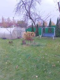 Участок 8,3 сот. правильной формы. Обнесен забором, с двумя калитками: на Воскресенскую и на Центральную улицу. Ворота и заезд для машины. На участке стоит старый парник из поликарбоната . На участке: 1 ель, три старых яблони и вишни, 2 сливы, куст крыжовника, смородины, жимолости, Имеются гортензии, декоративные кустарники и туи.