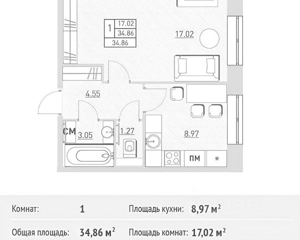 От года, комм. платежи включены (без счётчиков), комиссия 80%, залог 30 000 ₽