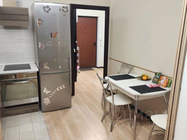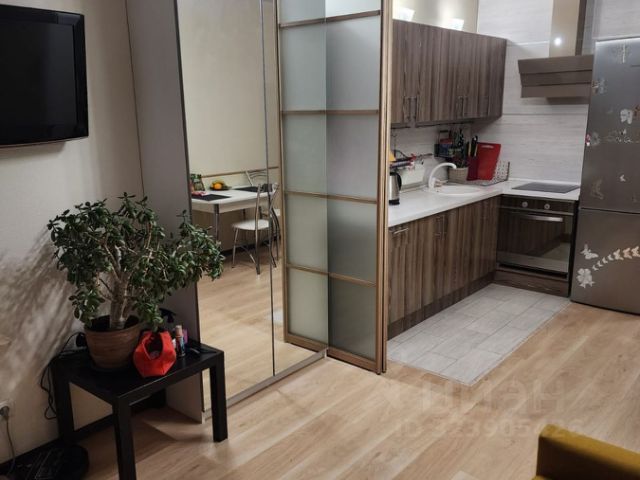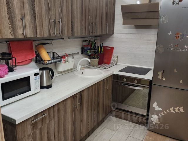 КУХНЯ: кухонный гарнитур во всю стену, шкаф-пенал, диван с дополнительным местом хранения (130*180 в раскладном виде), стол (раскладной), два стула, мягкий ковер. Дорогая и качественная техника: телевизор (подключается к станции Алиса), холодильник, микроволновая печь, плита (индукционная), духовой шкаф, вытяжка, чайник. Имеется кухонная посуда: кастрюли и сковородки (под индукцию), тарелки, кружки. В мойку встроен кухонный диспенсер для моющих средств. Также установлен четырёхступенчатый фильтр для очистки воды с дополнительным баком. Имеется встроенное выкатанное мусорное ведро.