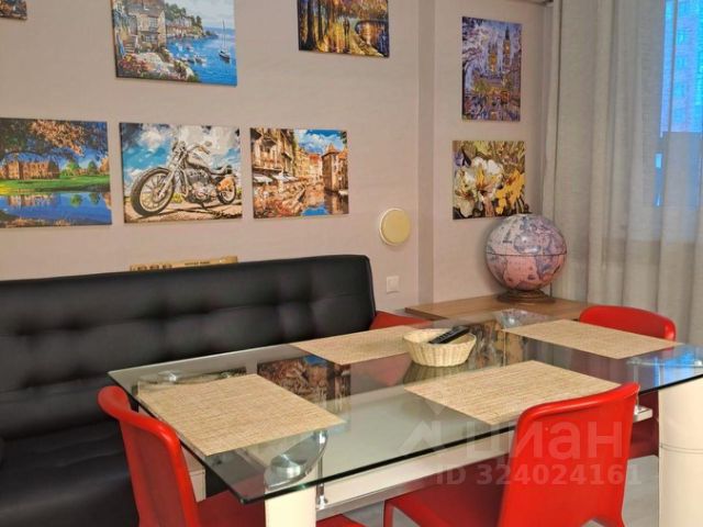 КУХНЯ: кухонный гарнитур во всю стену, шкаф-пенал, диван с дополнительным местом хранения (130*180 в раскладном виде), стол (раскладной), два стула, мягкий ковер. Дорогая и качественная техника: телевизор (подключается к станции Алиса), холодильник, микроволновая печь, плита (индукционная), духовой шкаф, вытяжка, чайник. Имеется кухонная посуда: кастрюли и сковородки (под индукцию), тарелки, кружки. В мойку встроен кухонный диспенсер для моющих средств. Также установлен четырёхступенчатый фильтр для очистки воды с дополнительным баком. Имеется встроенное выкатанное мусорное ведро.