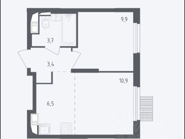 Площадь квартиры ~ 42 кв.м.