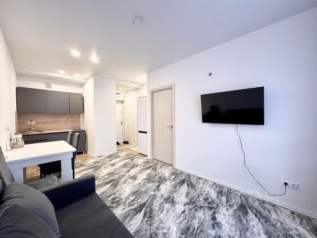 Сдаем квартиру-студию на длительный срок. В предпочтении порядочные люди для спокойного проживания. Дом сдан в конце первого квартала 2020 года, свежий ремонт. На территории дома действует пропускная система с охраняемой территорией и шлагбаумом. В подъезде есть консьерж. Во дворе находится детская площадка. Красивое фойе, три лифта. Окна в квартире с дополнительной шумоизоляцией и выходят во двор, где количество шума минимально. В квартире совместный санузел с необходимой сантехникой, в комнате сплит-система, маленькая кухня, бытовая техника (стиральная машина, холодильник, кондиционер, телевизор, пылесос, чайник), а также остальная мебель для проживания. Другая необходимая мебель может быть доставлена по необходимости и желаниям проживающего, под каждого будут созданы комфортные условия для проживания.