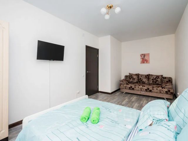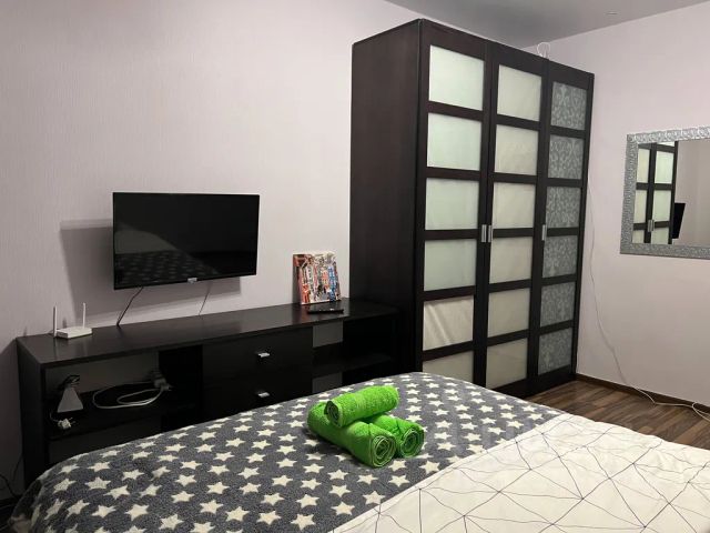 В комнате двуспальный раскладной диван, обеденный стол со стульями, встроенная кухня с мебелью, техникой, посудой и столовыми приборами. Интернет Wi-Fi, SMART ТV, глаженное постельное белье и полотенца. Санузел с душевой кабиной и стиральной машиной.