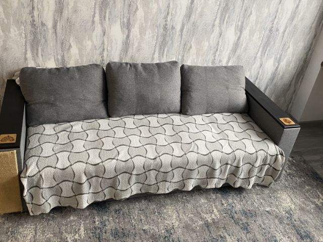 ДВУСПАЛЬНЫЙ ДИВАН- КРОВАТЬ, заправленный чистым постельным бельем