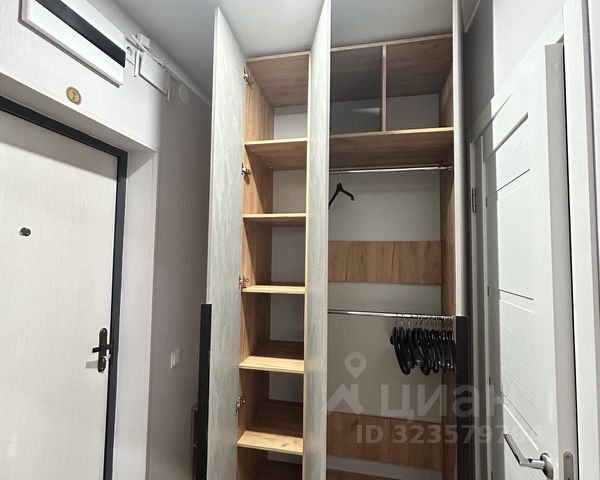 Система хранения : две ниши от пола до потолка в коридоре, вместительный шкаф в зоне гостиной. А под кровать, как известно, можно спрятать все, что угодно.
